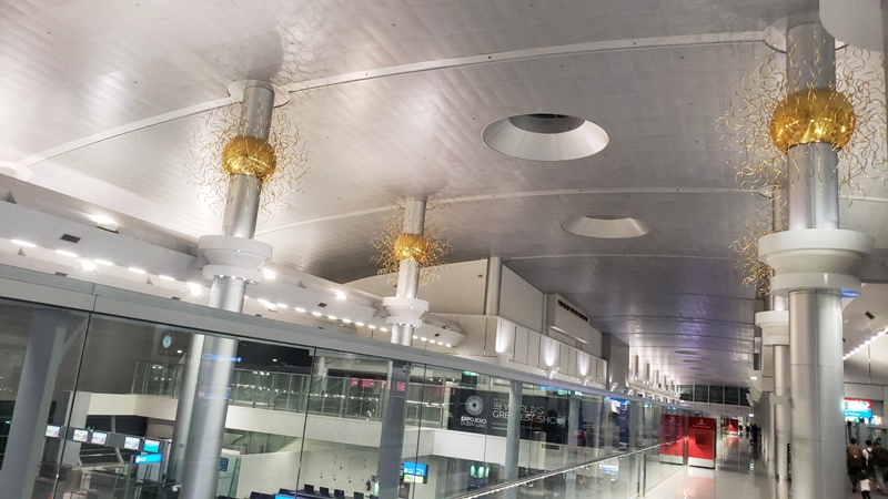迪拜真是土豪之国,机场大厅的柱头都是包金的。