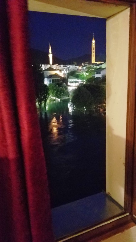 那天傍晚在纳列特瓦河东的莫斯塔尔车站下大巴后,沿着主街没走几分钟就找到了老桥附近的民宿客店,在一条小巷里。我们的客房安排在二楼,还按我们预定时的请求,面向小河和河上的古桥。推开窗户,下面就是[