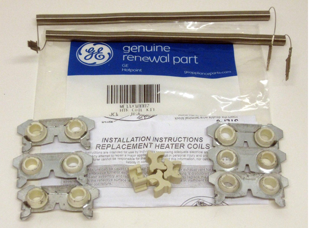 不知因为何故,洗衣服的烘干机突然不工作了。打开电源后,滚筒倒是转动,可就是没温度,没法烘干衣服。显然不是电源保险丝的问题,否则滚筒不会转。估计可能是烘干机的加热电阻丝坏了(HeatElement)。心里琢摸,这事如果只是换换电阻丝可能不麻烦。于是根据烘干机的型号在上网查了一下,发现有卖的而且不贵,马上就买了一套相同加热元件(图一)。此外,还到Youtube[