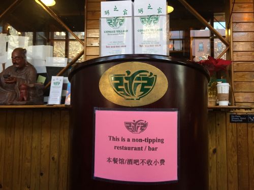 餐饮大亨梅尔(DannyMeyer)闹出动静之后,善于见风使舵的华人餐饮业者也跟着瞎比划。最近就有消息说,纽约华社的一些中餐馆也有样学样地在自家餐馆显眼的地方贴出告示,誓言“本店不收小费”。
