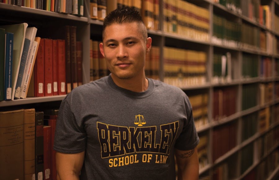 “你在这里上学吗?”馆长看着龙穿着印有“加州大学伯克利分校法学院”的T恤,伯克利分校法学院图书馆的馆长问杰里米龙。