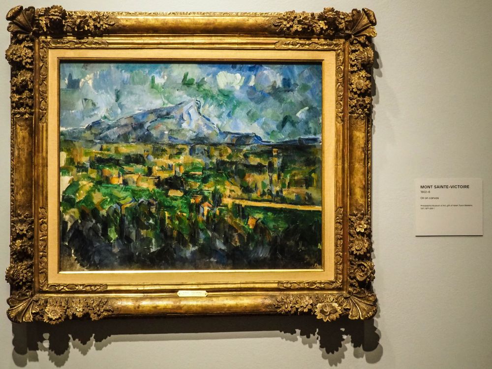 塞尚并不是非常合群的一个人,而且他当时的畫也没有被沙龙和群众广泛接受,因此后来离开了巴黎回到了自己的家乡艾克斯,一个优点就是坐在房间里就可以看到远处的圣维克多山,成了他作画的现成题材。他曾说过:“用圆柱体、球体和圆锥体来表现自然”,这里他画的圣维克多山以及许多其他就是就是由这些几何形体构成的。