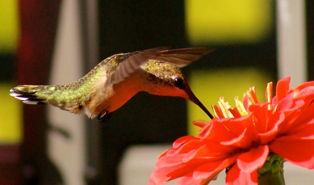 晨读岂肯枯坐?--心盼花鸟伴旁;早春一把花种,盛夏果然艳香;蜂蝶已然乱舞,翠鸟却未出场....配出蜂鸟“可乐”,花中红瓶安放;时辰方过有半,此君翩然来访.....