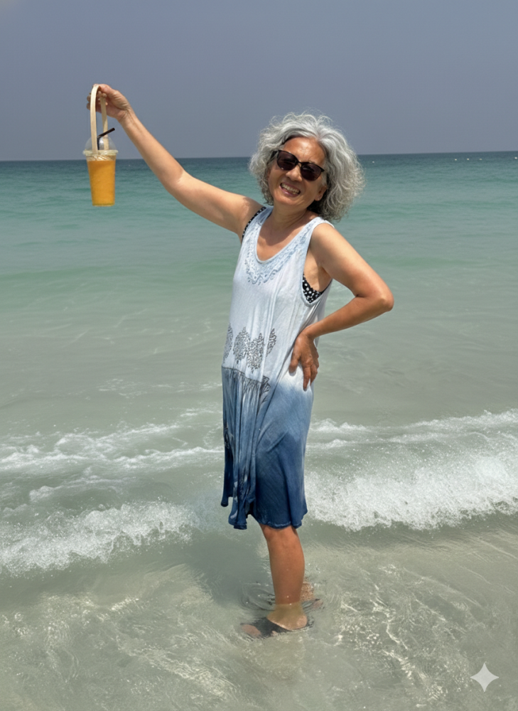 昨天和我妹妹到泰国格兰岛去玩。从芭提雅到格兰岛坐摆渡的船,只要泰铢30元,也就是说不到1美元,摆渡船开的很稳当,凉风不断吹来,非常舒服,大约40分钟就把我们送到了格兰岛。比起中国人的黑客,摆一个渡收了2万4泰铢,真是良心服务啊。一到格兰岛,就喜欢上了这座岛屿,它的水很清很清,沙子很白很白而且很细很细,和我在加勒比海见过的岛屿不同的是,它的海[