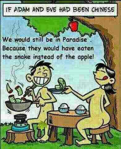 1.亚当夏娃。好奇性促使他们偷吃了禁果。下图幽默对话:如果亚当夏娃是中国人的话,我们会仍然在天堂里,因为他们俩不会吃掉苹果,而会把蛇给吃了!