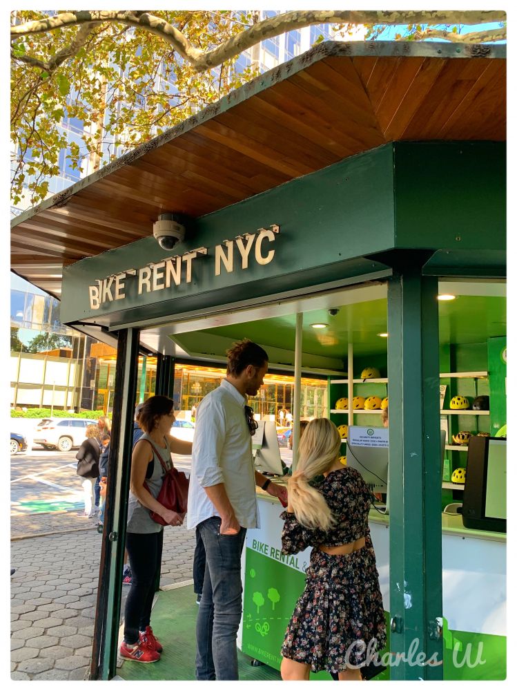 乘地铁到了曼哈顿中央公园南门59街入口,门口就是自行车租借处。