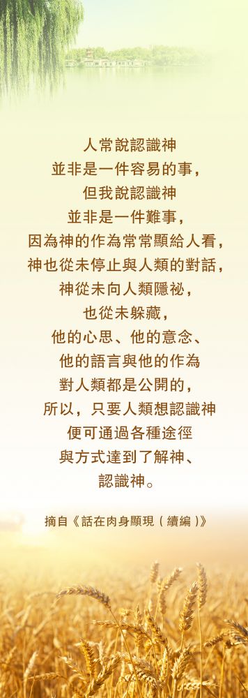 神主宰萬物的方式1 自從你呱呱墜地來到這個人世間的時候,你就開始履行你的職責,為著神的計劃、為著神的命定而扮演著你的角色,開始了你的人生之旅。無論你的背景、前方旅途怎麼樣,總之,沒有一個人能逃脫上天的擺佈與安排,沒有一個人能掌控自己的掌控自己的命運,因為只有那一位——主宰萬物的能作這樣的工作主宰萬物的能作這工作。阅读全文]