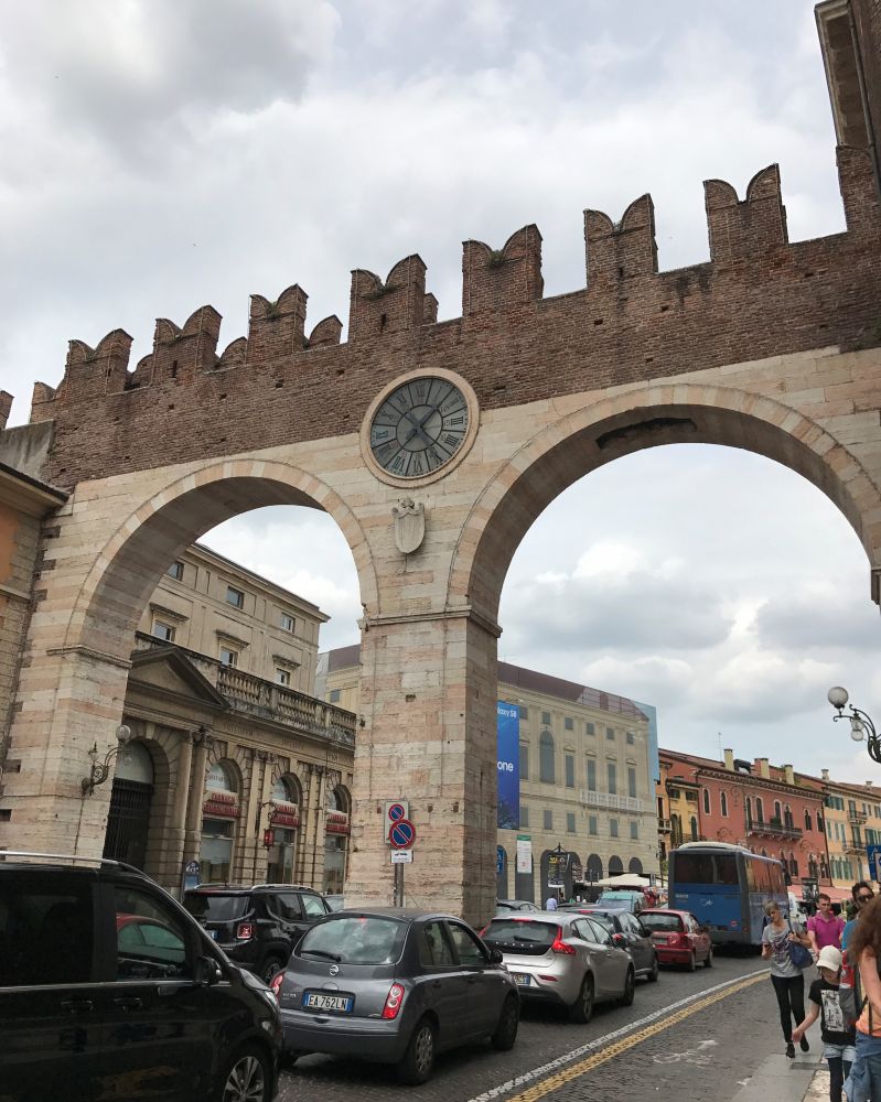 Verona虽然没有意大利别的大城市那么出名,却也是一个充满活力的小城。车子停在城外,小城四周都是古城墙。大部分的游人都经过大大的城门,进入CentroStori[