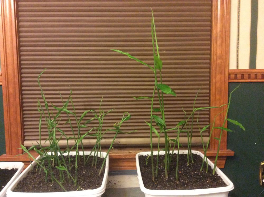 我在三月中旬写了一篇冬天室内种生姜的博客。紧接着在3月18日种了一盆,3月28日又种了一盆。现在54天以后,它们已长成这样