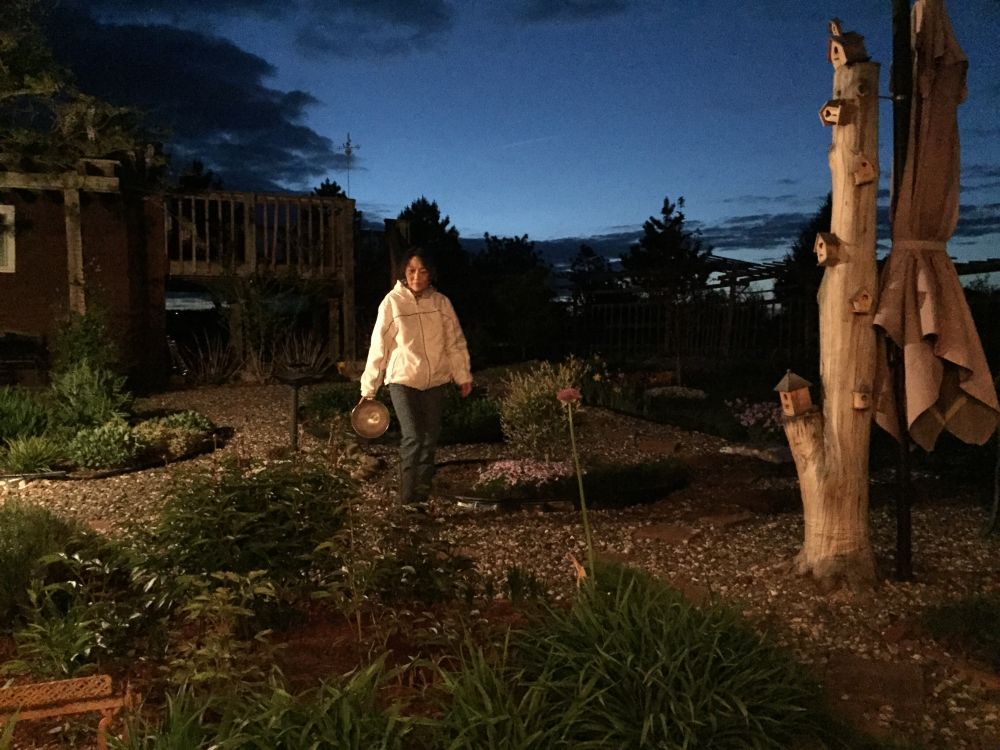 冬天的那场大雪把门上方的遮雨棚压变形了。昨天我去修理它,需要登高。我正要踩着椅子蹬上阳台扶手,女儿在我身后大叫:不行!不行!Daddy危险!我知道木制扶手有弹性晃动,但是只要不是很大的横向力,垂直承受我的体重没有问题[