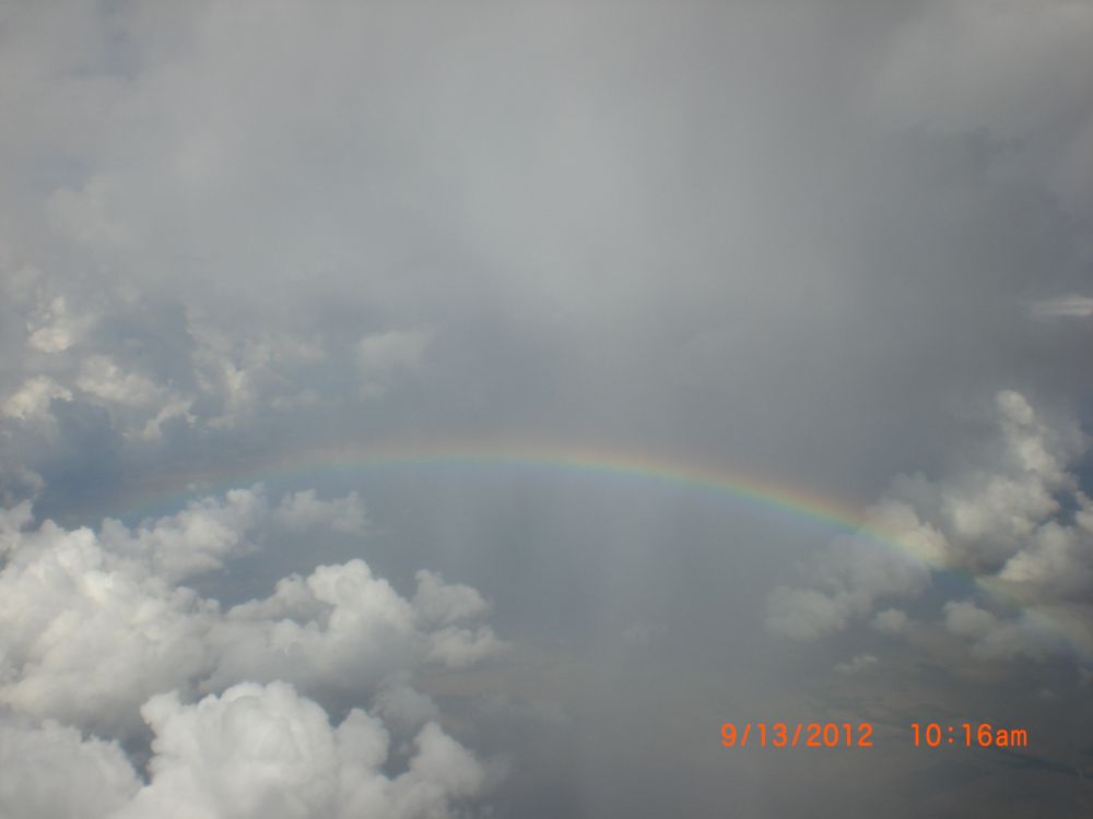 记得三年前的今天,那是个乌云密布阴雨绵绵的日子。在从奥斯汀飞返达拉斯的途中,于云端有幸相逢飞机舷窗外一道接一道美丽彩虹。不仅仅让我大饱眼福,更令我不禁感慨---