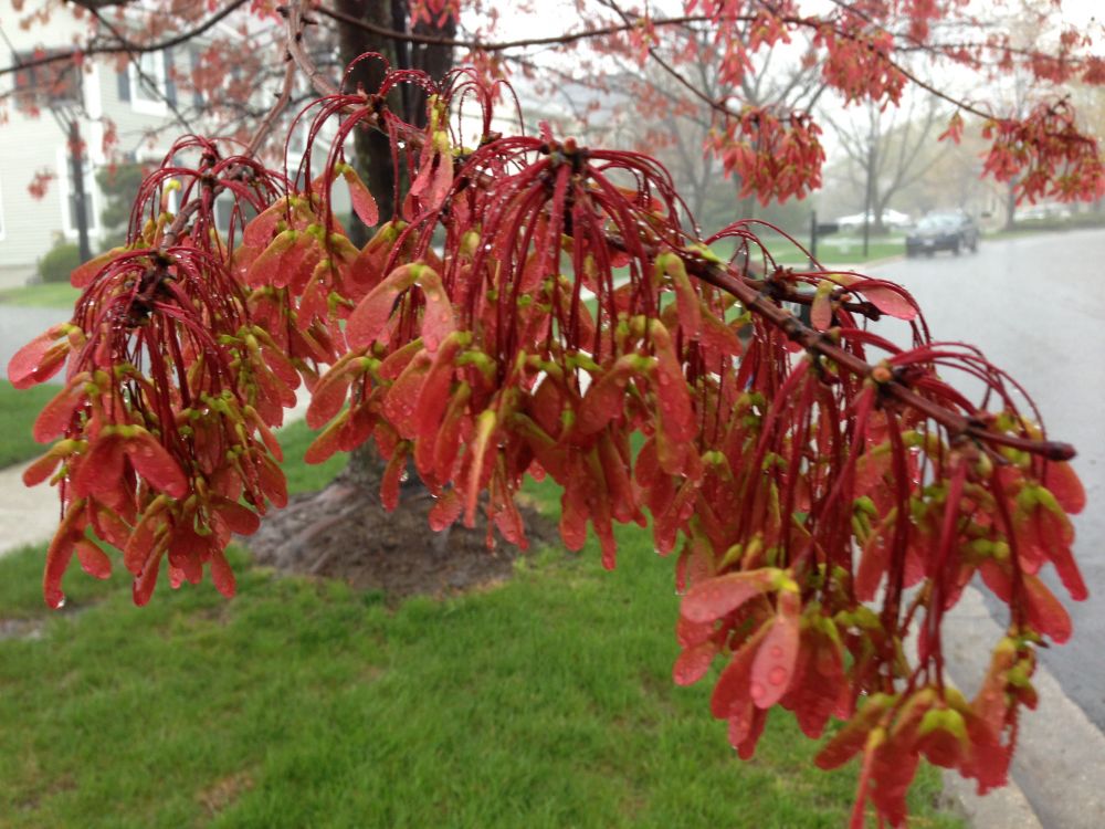今天雨中散步偶遇,一手撑伞,一手拍枫树花,好惬意。。。