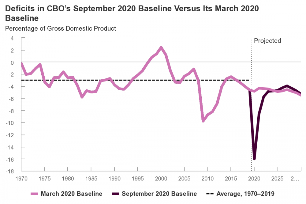 第一,今年3月的时候(那时疫情已经开始严重),CBO说今年(到9月[