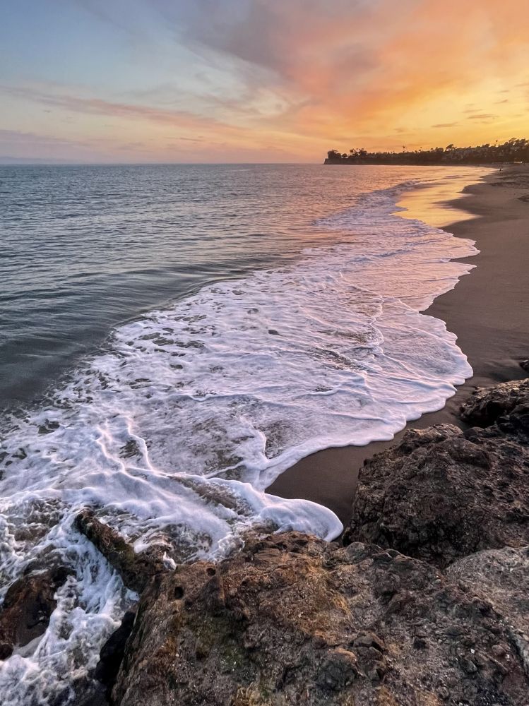 2024-3-28落山矶有许多著名景点,既然这趟旅程沿加州海岸南行,主要目标在海边。今天我的游程是一串海滩:圣塔·芭巴拉海滩、马里布海滩、圣塔·莫尼卡海滩、威尼斯海滩。昨天留宿圣塔·芭巴拉SantaBarbara的海边旅店,就从这里说起。圣塔·芭巴拉游艇港湾里有几百艘游艇,昨天下午见人在用吊机放几艘帆船下水:流线形白色船体竖单桅,挂两片半透明百慕[