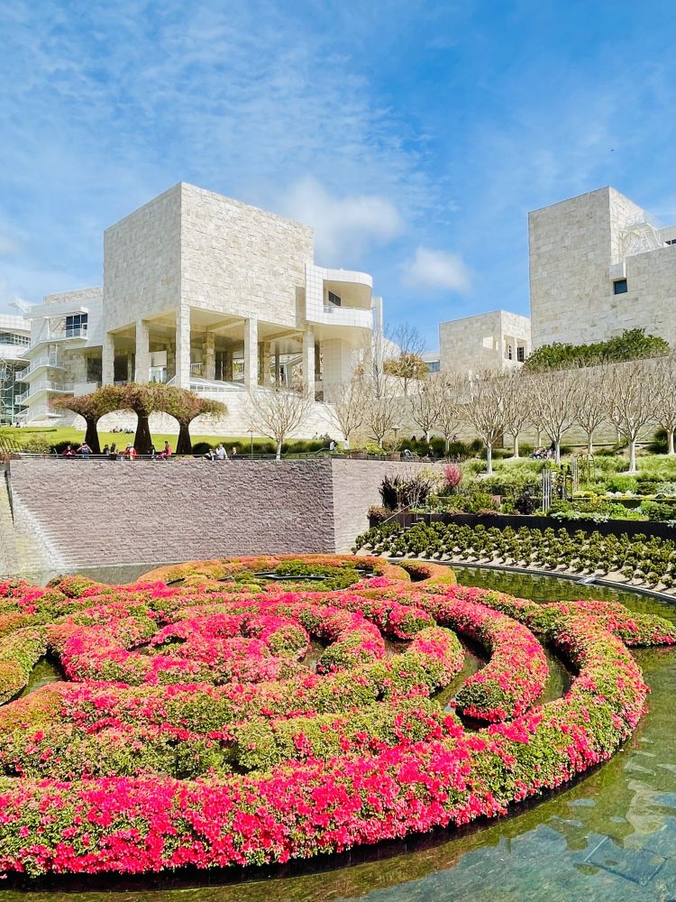 即使对艺术不感兴趣,只要对落山矶市貌景观感兴趣,就是应该去参观盖蒂中心GettyCenter,一座艺术博物馆。去参观盖蒂中心,与其说是欣赏其艺术,有相当丰富且不乏杰作的艺术藏品,不如说是欣赏其建筑。与其说欣赏建筑,一座体验现代主义抽象原则的后现代主义建筑巨作,不如说欣赏其景观。盖蒂中心位于落山矶北部的一座山顶上,紧邻主要入城的405高速[
