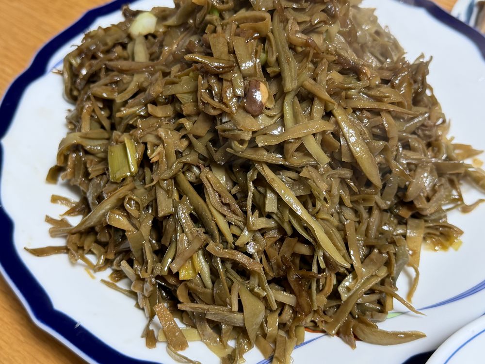 这个豆角丝不是新鲜的豆角哦,是我从国内背回来的豆角丝,是干菜。喜欢吃豆角的人,在东京是吃不起豆角的。后来自己家种了豆角,对豆角渴望就没那么强烈了。几年前我大姐说,亲戚给晒了豆角丝,要不要?我说不要,我做不好。后来大姐还是给寄到了三亚,我们就在三亚家里做了一顿,哎呀太好吃了,从此我就有了亲戚家的专供豆角丝了。