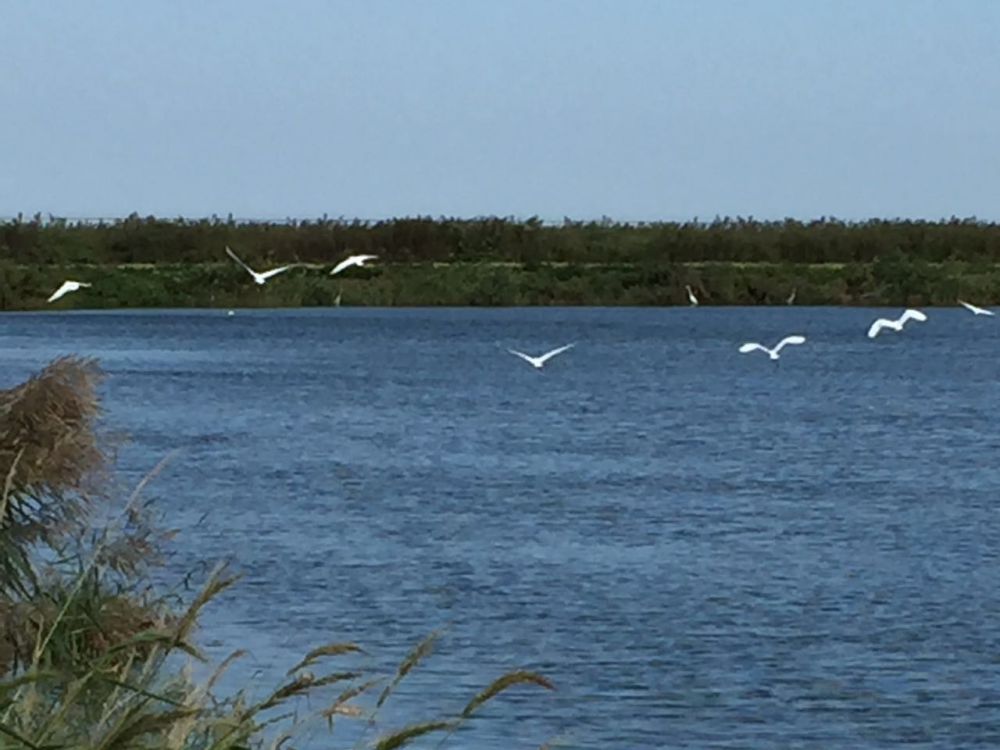 苏北盐城射阳县境内的生物圈保护区,近海淡水养殖湖面白鹭惊起的瞬间。