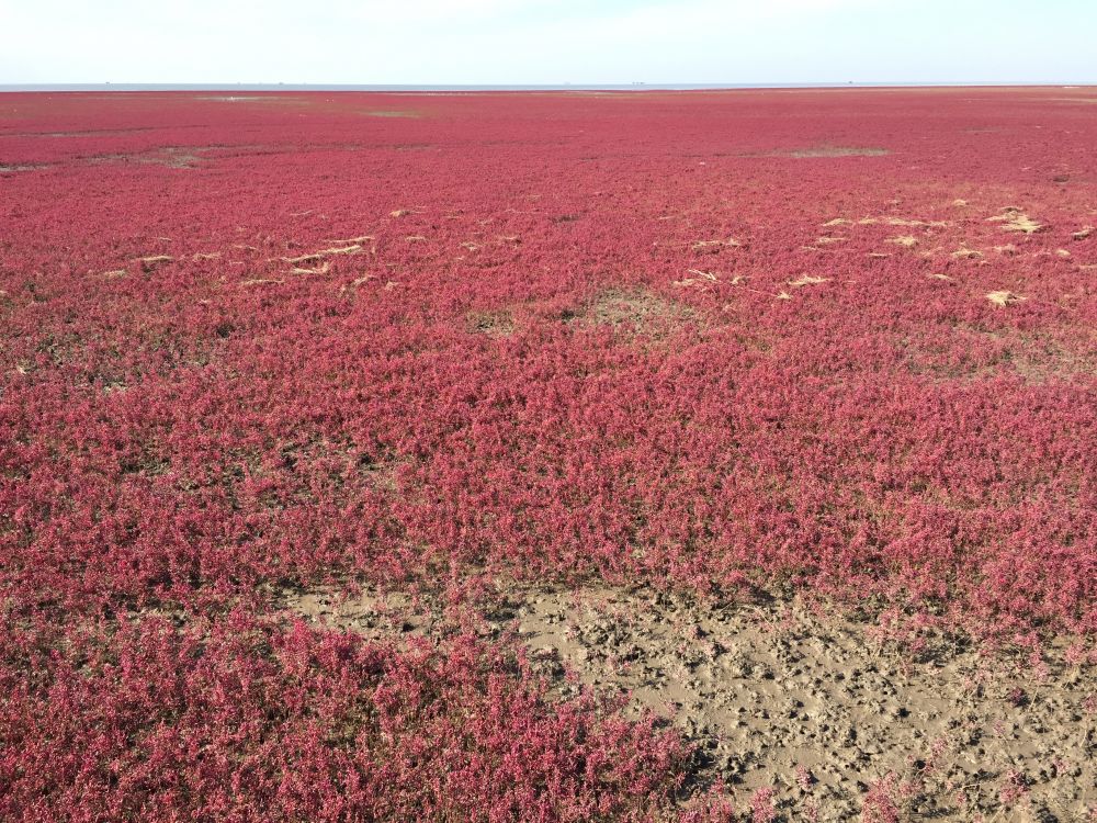 盘锦红海滩,地球上不多见的自然景观,最佳游赏时间是每年9月15~25号。[