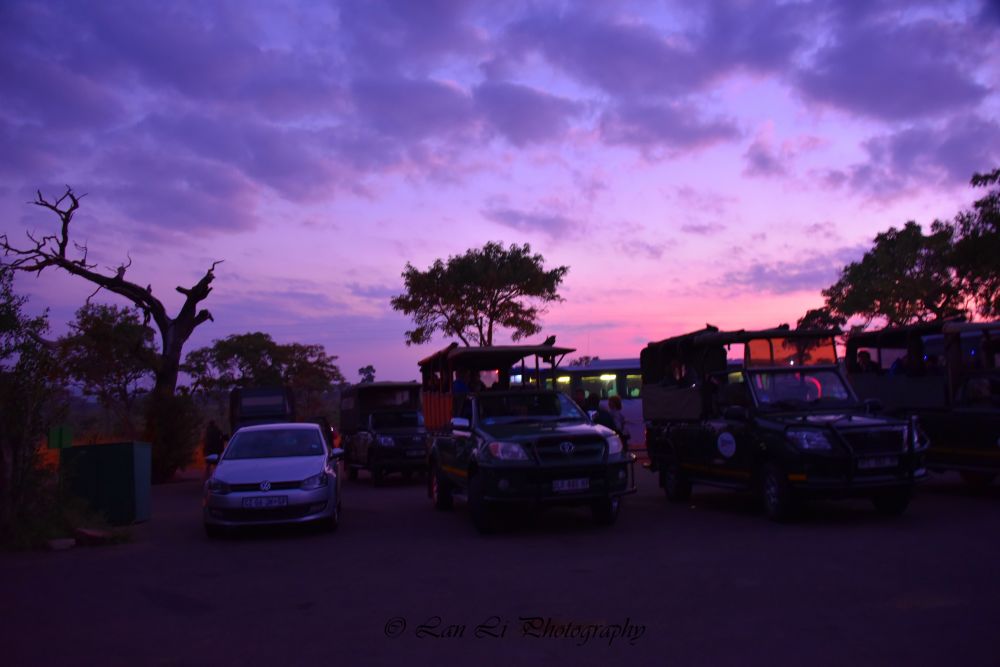 终于等到了再次gamedrive的这一天。四点半起床,咖啡早点都没敢吃,领了午餐袋就去找车占位子了。随便上了一辆车,挑了司机后面的座位。这种越野车可坐十人,敞篷。同车的一个老太太上厕所迟迟不归,其他三辆车早已没了踪影,心里那个急呀。