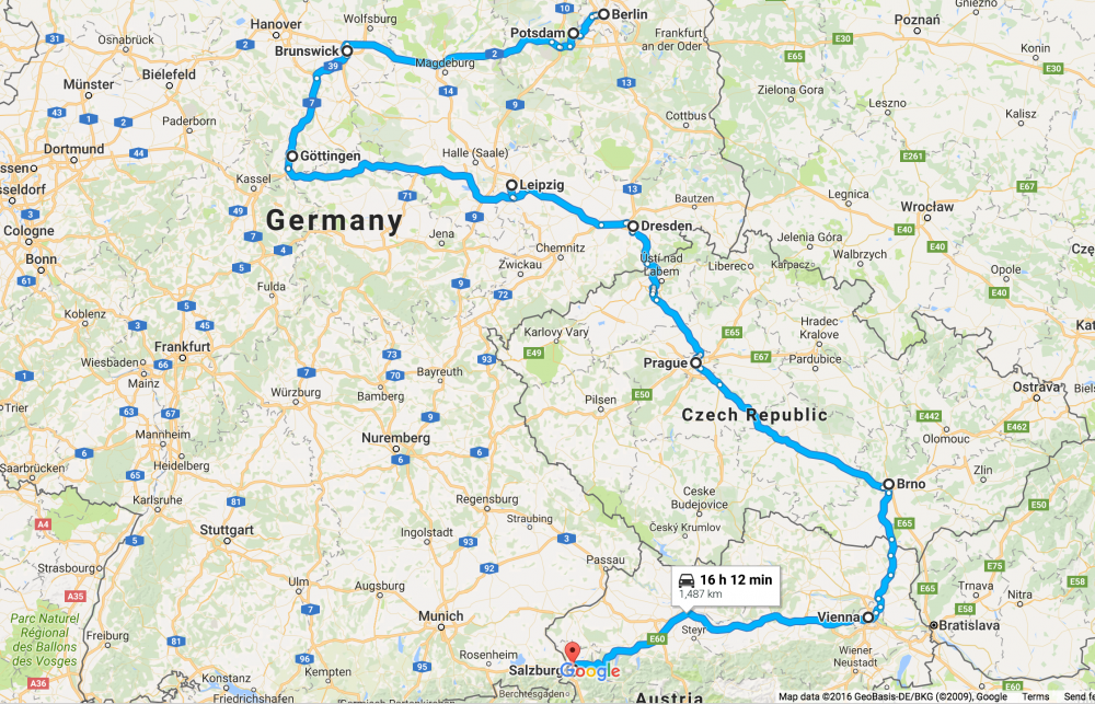2015年春假时间(2015.3月底4月初)我们全家去了一趟欧州。八天里自驾了2100公里,走马观花了三个国家(德国,捷克,奥地利)的大大小小10余个城市(按时间顺序:柏林,波茨坦,布伦瑞克,哥廷根,莱比锡,德累斯顿,布拉格,维也那,萨尔茨堡,慕尼黑)在其中的4个城市(柏林,布拉格,维也那,慕尼黑)每个城市各住了两晚。几年前去过罗马和雅典,算是粗略光顾了[