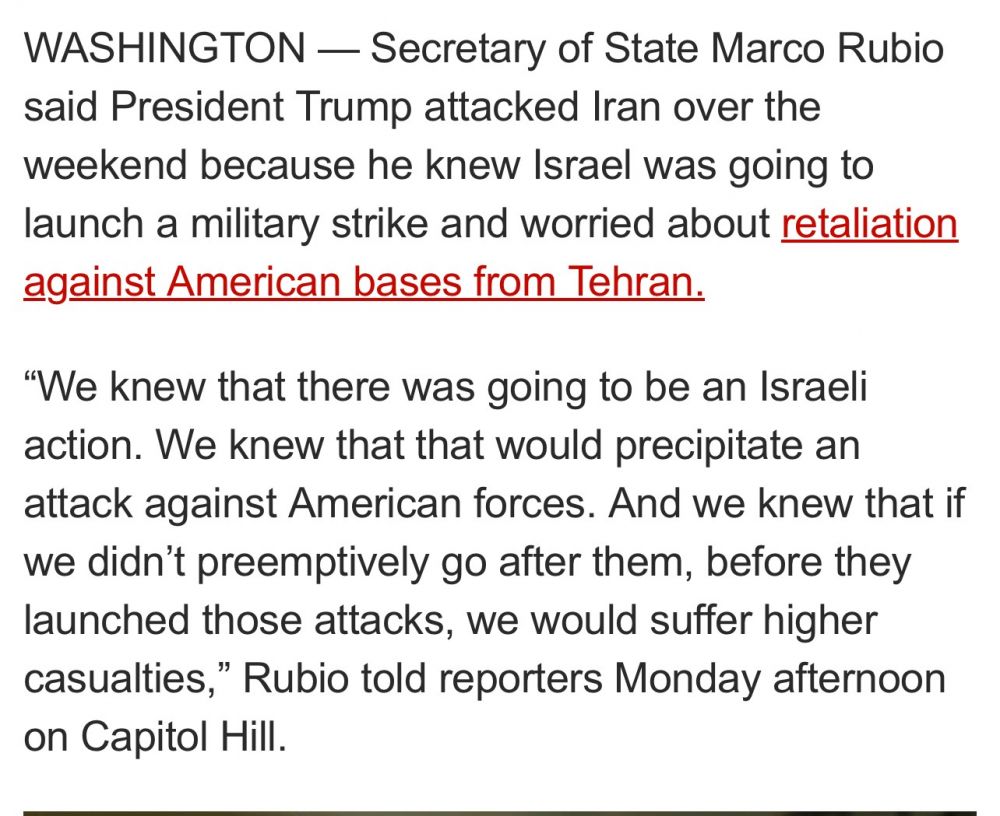 昨天,国务卿Rubio在国会上接受记者采访,为打伊朗给出了最新的解释: