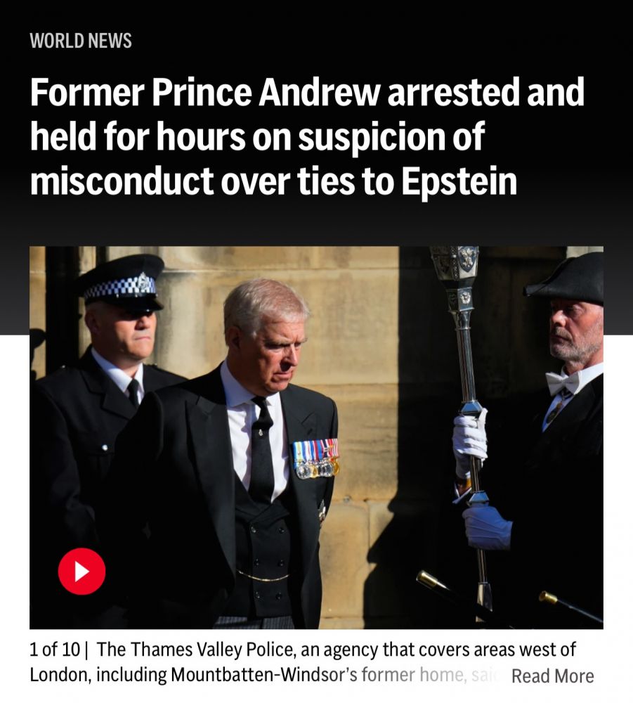 王子犯法与庶民同罪,英国前王子安德鲁公爵,成为爱泼斯坦文件公布后,大批“光荣”上榜的权贵官宦富豪中,被捕的第一个“名“人。“名”:臭名昭著的名借把美国牢底坐穿的喜囯大总统郭文贵的名言:一切都是刚刚开始。