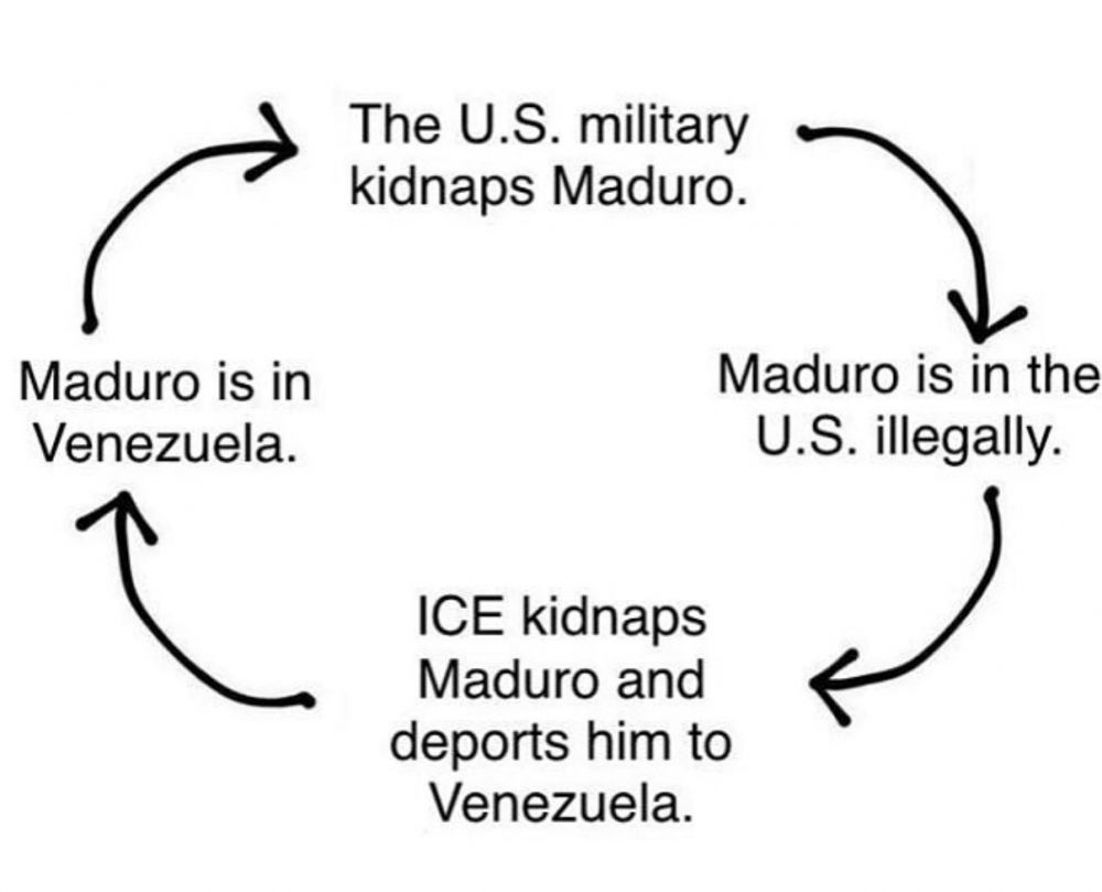 不明真相的吃爪群众说:不可能!抓捕马杜罗的美军特种兵与驱逐马杜罗的ICE,都听命于川普。又捉又放,发神经啊,开神马国际玩笑?!