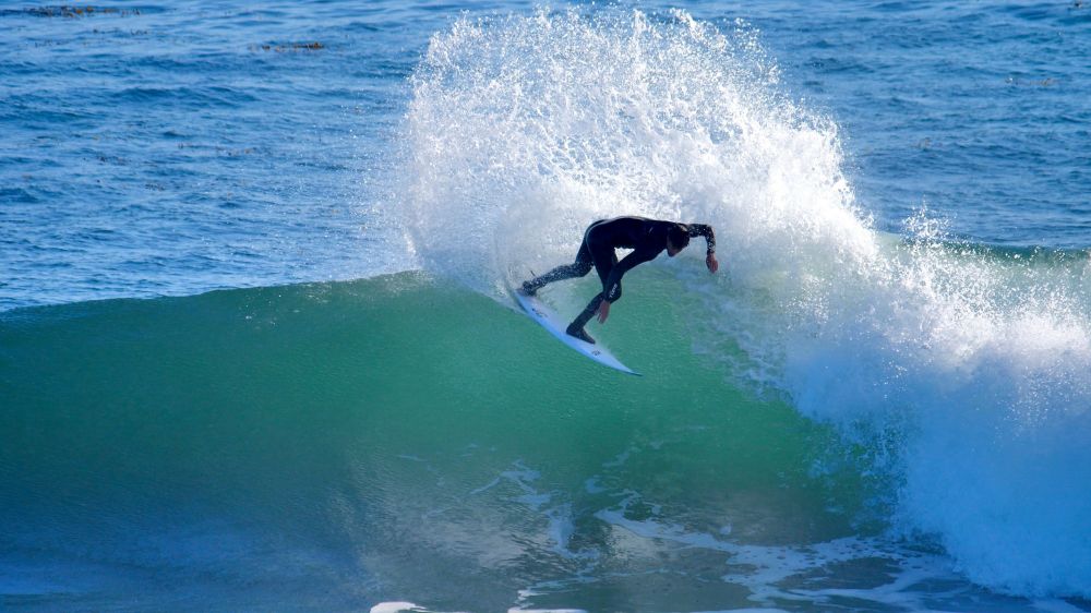 SantaCruz是加州湾区著名的冲浪地点。即使是12月份的季节,依然有许多爱好者这那里冲浪。