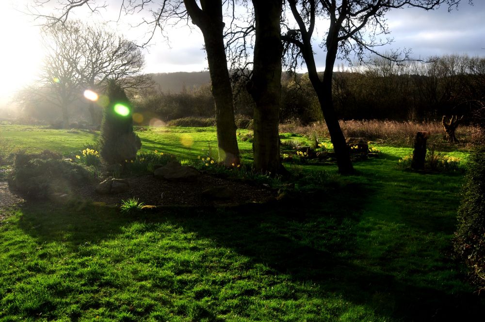 在离瓦砾花坛不远的地方,曾有一株老橡树和山楂树的残桩。去年请Stuart挖掘池塘时,我便让他用机器将树桩挖出。我没有时间把这些树桩制成工艺品,但用来装饰院落,大概既简单,又符合自己的懒惰。