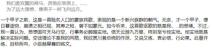 我顶瞧不上那帮光说不练的中等国家政客。用廉价的言语和高尚的道德把乌克兰撮上虎背,然后,自己在场外充当拉拉队。眼巴巴地看着战争机器不停地运转,这头吞进白花花的银子,那头吐出红通通的鲜血。它们却象谢苗诺夫一样,看到猪咬了高尔基,兴奋地喊,咬哇,宝贝儿,咬死他们。赚美国的钱,骂美国的人,端美国的碗,砸美国的锅。戴着墨镜在国际舞台上耍酷,[
