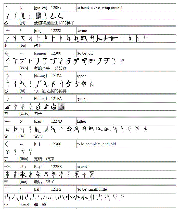 从认识论的观点看,人类认识遵循从简单到复杂的规律,现代人对远古象形文字之间相似性的认识也不例外。现象显示,华夏上古文字与苏美尔楔形字之间有大面积的相似性,而且字体越早越突出,字形越简单,相似性越明显。迄今为止,研究表明,约2,500个上古文字表现出与楔形字的相似性。不仅如此,大面积的相似性还表明,这两种远古象形文字之间存在某种拓扑转换关系[
