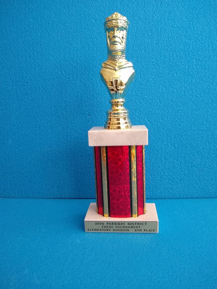 老大从小学二年级开始学下国际象棋。我们对规则是一窍不通。他在第一次参加的学区比赛时得了第八名,兴奋不已。后来年年拿了学校的第一名。但高中没有足够的队员组队就放弃了。不过他的喜好,感染了弟弟。弟弟也从小开始下棋。加之圣村下棋的风气浓厚。弟弟参加的比赛就多了。今天就晒老大的奖杯。