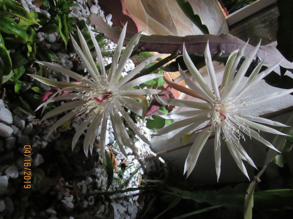 它们花开花闭,日复一日。可它们一真一假。右边的一盆的花是粘上的(见http://blog.wenxuecity.com/myblog/73542/201904/27487.html。虽是假花,