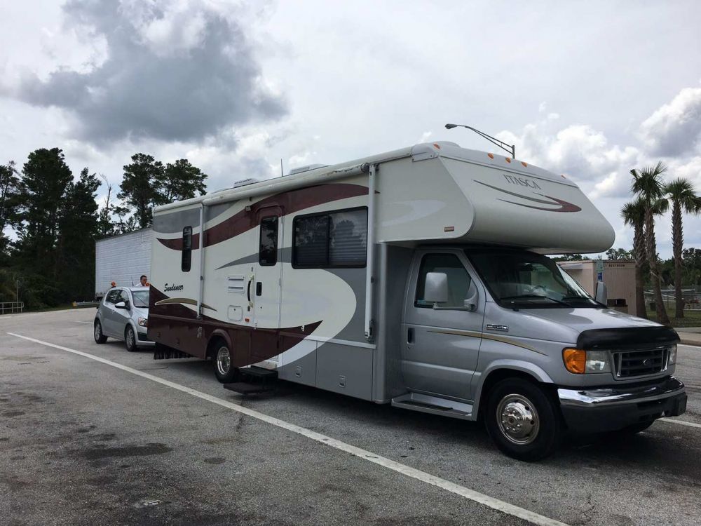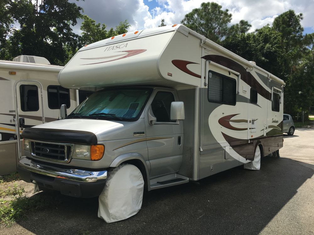 两年多前买了人生的第一辆房车(Recreationalvehicle简称RV),开始了房车旅游生活。买的是三种motorhome之一的自行式C级房车(ClassCMotorhome),由口碑较好的房车公司(Winnebago)生产的2006Itasca,SunDancer.虽然出厂日期较老,但其不到三万英里,内部各种功能、器具崭新,卖主有详细的保养记录。