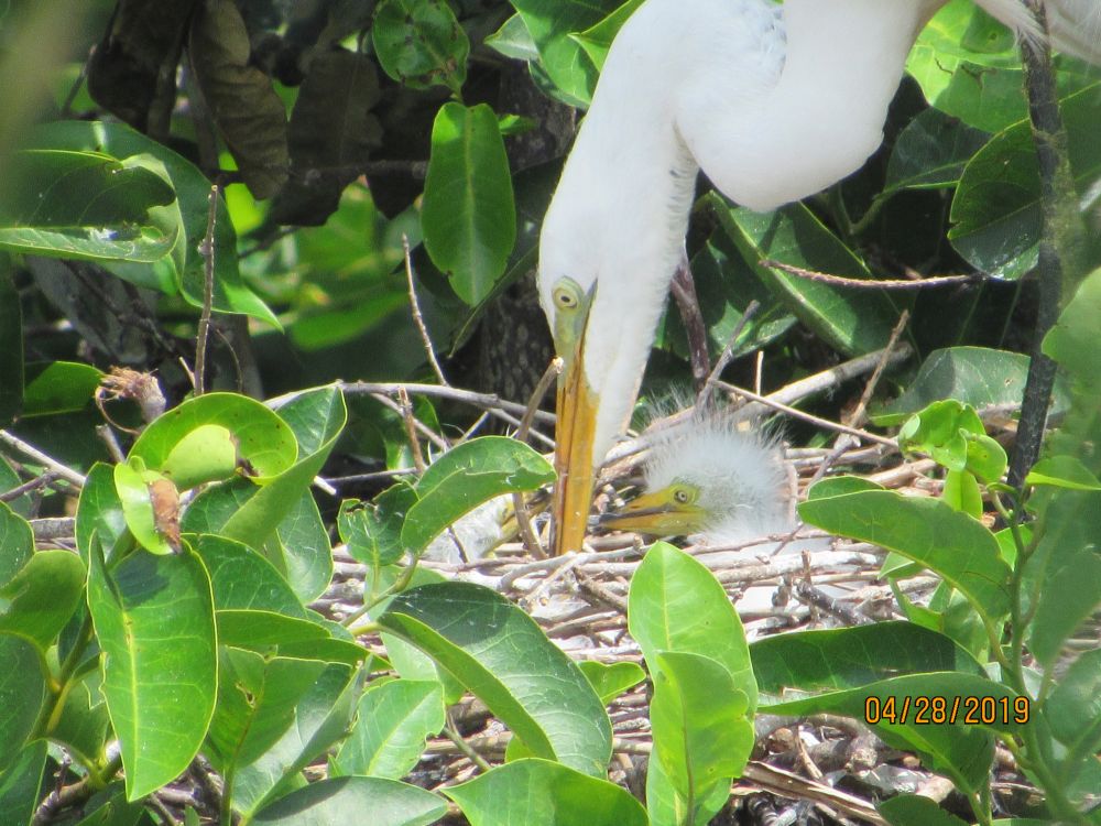 这是另一只大白鹭美人妈妈,她的两只小宝宝稍大一点,可能两周左右。