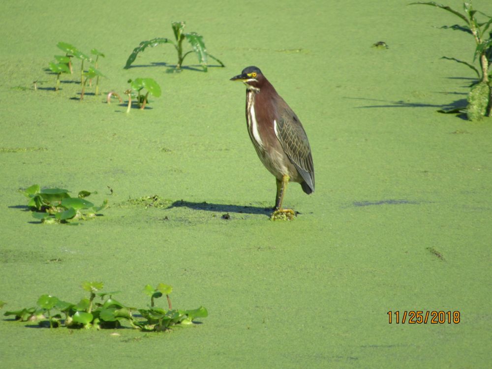 绿鹭(greenheron)是鹭类鸟中个体最小的成员。它憨厚,多在水面附近活动,不怎么引人注目。
