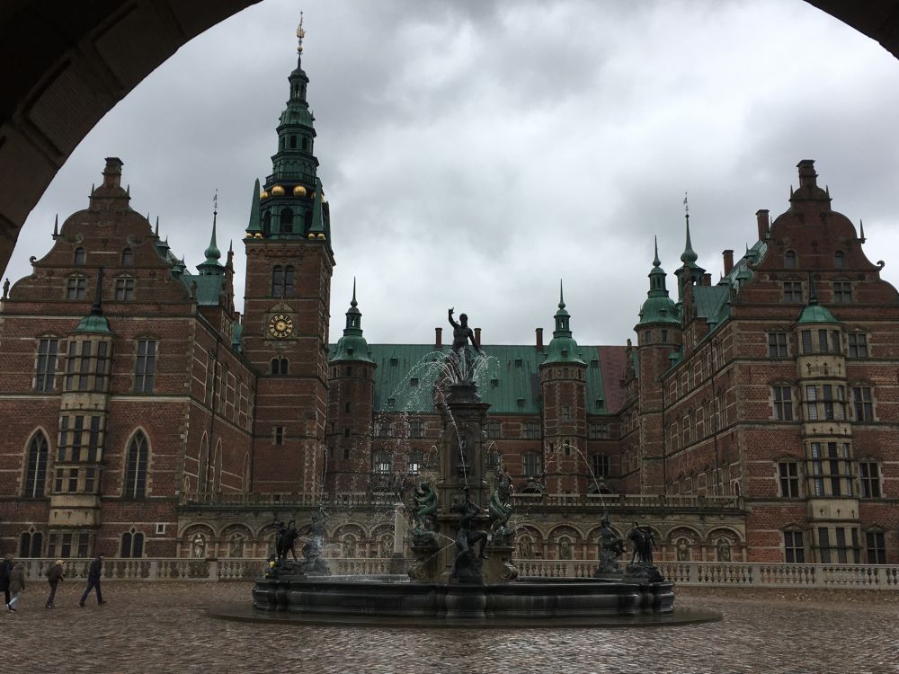 第三天果然阴雨绵绵,很冷。我们起早,乘火车,转汽车,再步行,花了近一小时,来到了位于哥本哈根城北郊的小镇(Hillerod),参观丹麦最美城堡,腓特烈城堡宮(FrederiksborgCastle),又称水晶宮,现为丹麦国家历史博物馆。先晒张主城堡的照片吧。