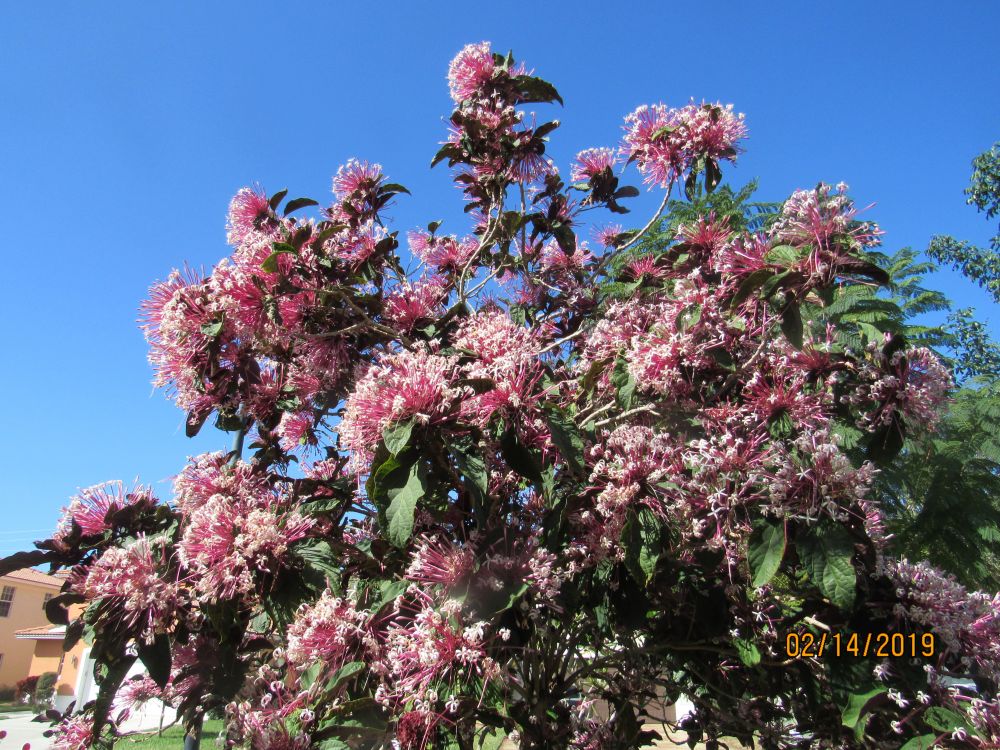 烟火花树,又名针垫花(Starburst,Clerodendrumquadriloculare)是佛州极少有的冬天开花的小乔木。