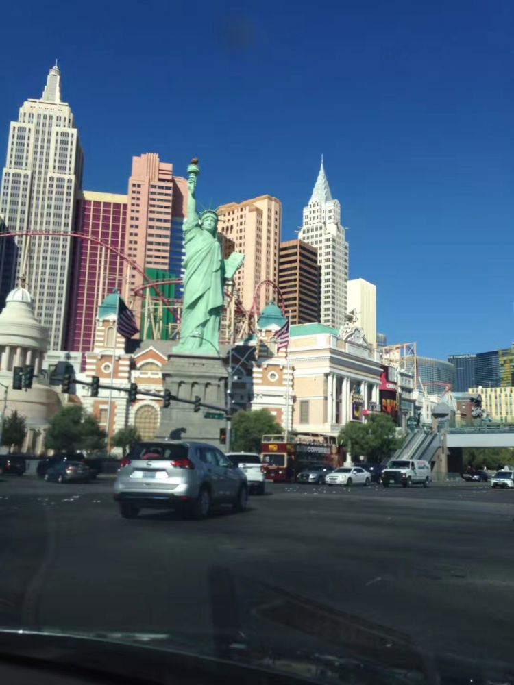 闻名的拉斯维加斯(LasVegas),简称赌城,位于Mojave沙漠的东部,海拔低于1000米,四面环山,建立在荒漠谷地上。我们去那里离震惊美国的枪杀案不到一月。在那里住了三天四晚。到达的那晚上穿过大街,领略了夜景。最后一天早上花了几个小时,沿着最热闹的街道,Strip,开了一大圈,然后在转了一下。街两侧一个又一个的赌场旅馆,热闹、瑄闹、人来人往,难以想象三周前[