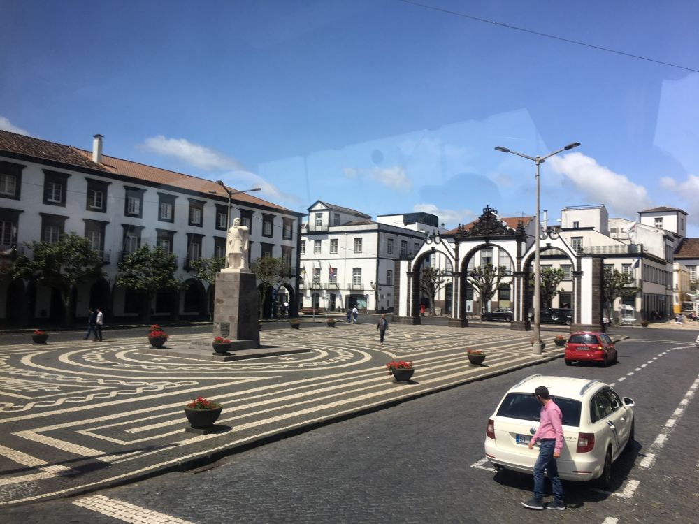 从大西洋的西南北上,连续航行六天后,我们顺利地停靠在远离欧亚大陆约一千五百公里,属于葡萄牙的PontaDelgada。这是一火山爆发后形成的島屿,是Azores岛屿自治区的首府,地处北大西洋与欧亚大陆的要喉。大西洋上南来北往大大小小的船都会在这里加水、补充各种食物、饮料,维修保养各种各样的机械设备。我们跨洋游客则想上岸观光。PontaDelgada是送给跨洋旅行者最好礼[