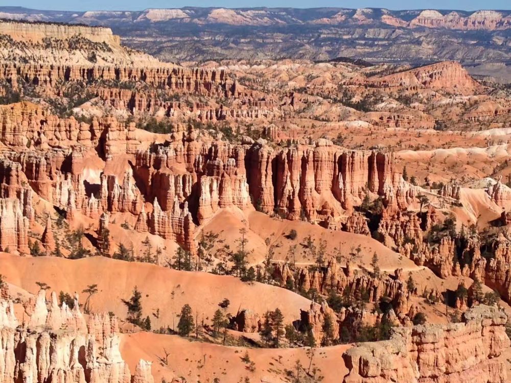 布莱斯峡谷国家公园(BryceCanyonNationalPark,简称Bryce)建于1924年,位于犹他州东南侧,是我们此行的第二个国家公园。Bryce是科高原大阶梯(theGrandStaircase)中基质岩石最年轻、海拔最高(最高处约2,400to2,700米)、纬度最高的阶梯。这里气候最寒酷,降水也最多。不象大峡谷与锡安(Zion)峡谷,这里没有显著强烈的河流切割,冲刷,与侵蚀。这里虽被称为峡谷,但并非严格意义上的峽[