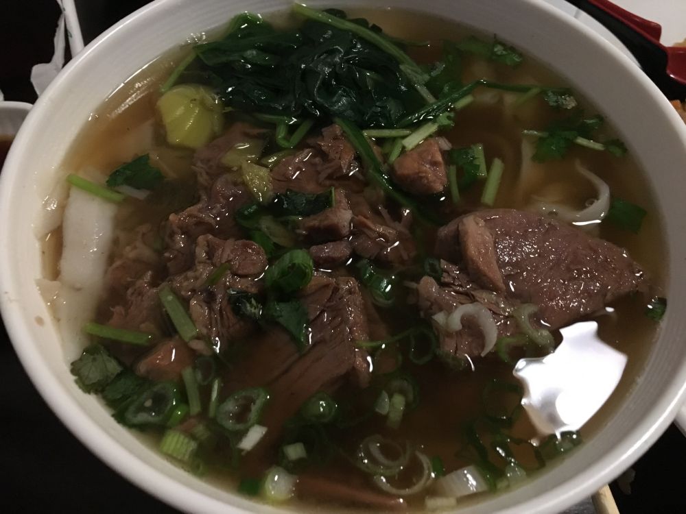 今天(周五,October26)从仍是炎热夏天(80F)的南佛州飞到阴雨绵绵、只有40多度的亚特兰大看望女儿.我想吃汤面,女儿带我去了一家兰州拉面馆,点了牛肉刀削面、香肠炒饭、葱油饼、和锅贴.味道不错!