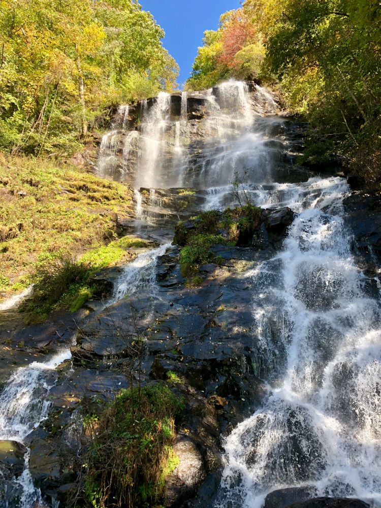 周日阳光明媚,太阳将亚特南大大地照得暖暖的.女儿说,“今天去北边,看有名的Amicalola瀑布,得准备爬山啊.要上近六百级梯,妈妈能行吗?”“行,没问题”.