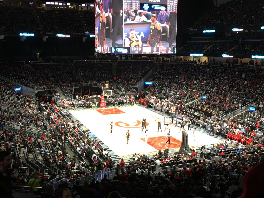 重新装修,易主的StateFarmArena,即Hwarks的主场内很宽敞、热闹.观众不少,很快找到座位,不错,还看得很清.