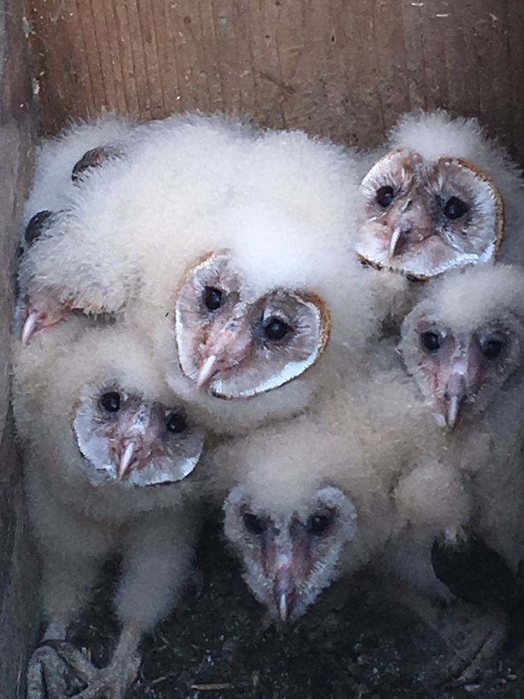 取下一个以前安放的木箱,呀,真有猫头鹰宝宝在里边呢!太可爱了,大大小小六只。