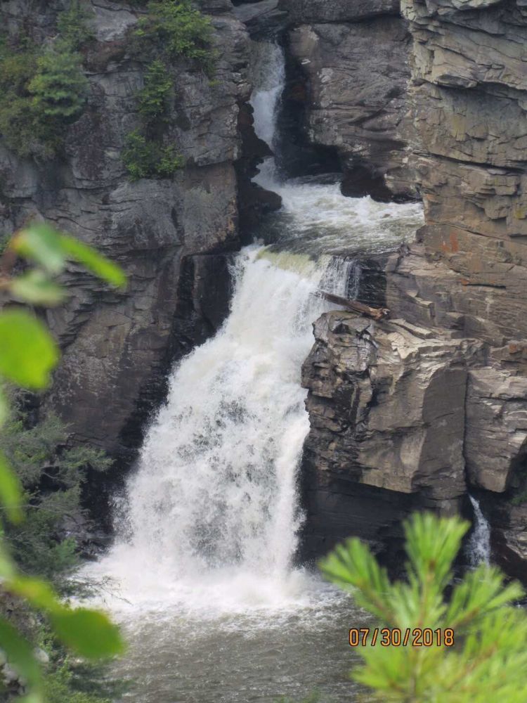 近几年看过一些壮观的冰川、雪山形成的瀑布,可还未见到过真正具气势、又秀丽的山间瀑布.因而这次在古老的蓝色山脊公园路一带特别下功夫。看瀑布与上节提到的看鹿不同,不是偶遇,而是有备而去的。看山间瀑布,一般山路陡峭。尽管如此,凡是附近有瀑布的山,我们都去拜访了。