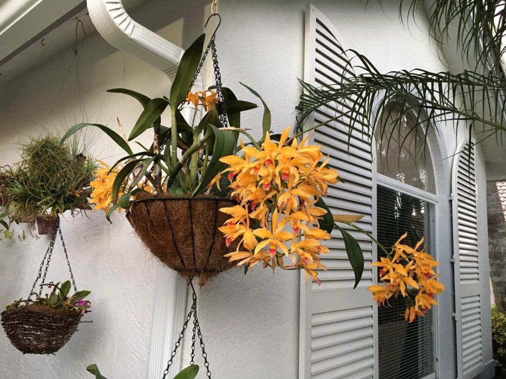 每晚小区散步最喜欢的是看各家门前的植物。前段时间,终于见到了家门前掛满兰花的主人。他热情地给我看了他前、后院及室内植物,真是美伦美奂。
