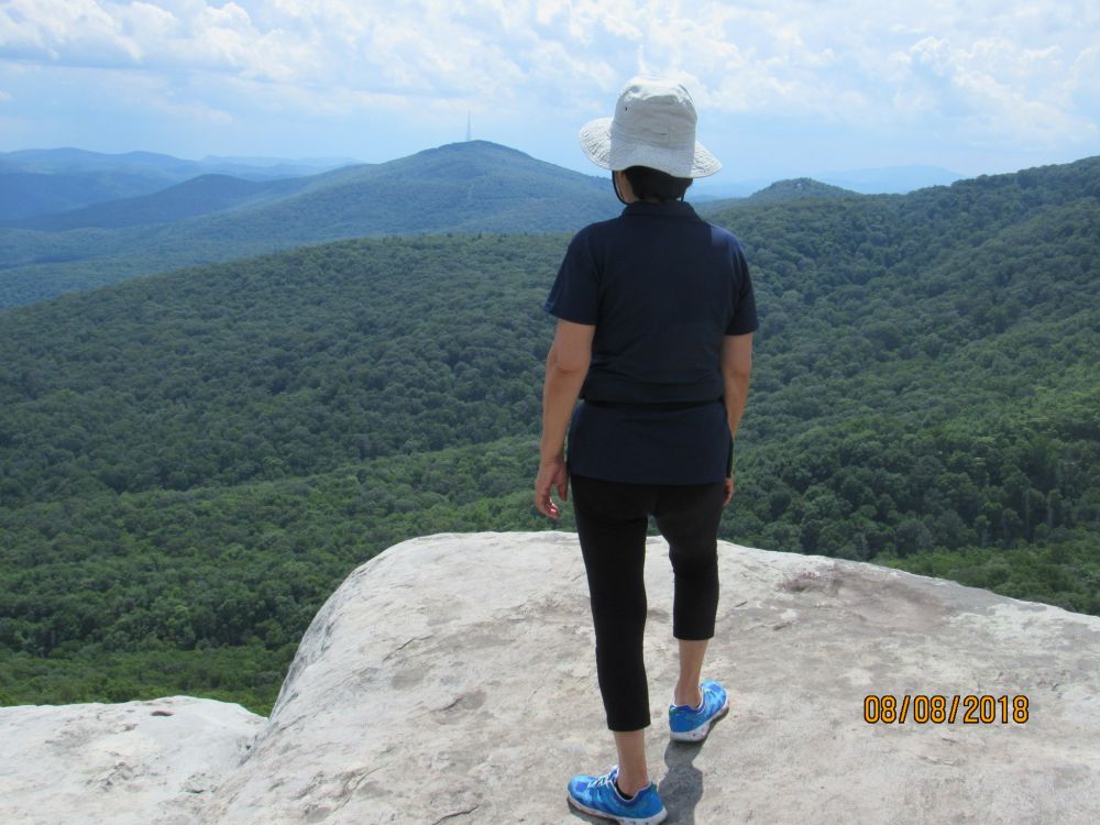 每座山都有自己的特色登山小道(trail):有的穿林;有的遥望群山峻岭与山地峡谷;有的聆听哗哗溪流;有的赏石;有的观瀑布;有的赏花、认树,等等,应有尽有。我们基本上每天去一两座山,选择中等难度,距离在1-3公里的小道,只是山区的距离似乎总是比平地的要长得多。每[