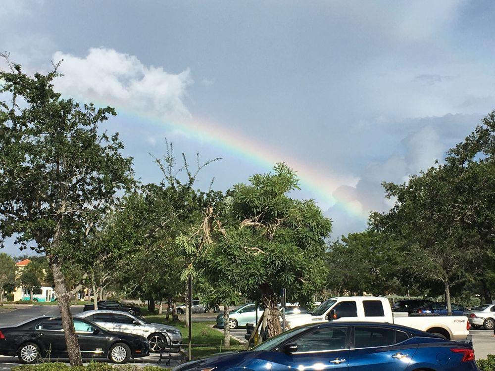 佛州夏日焰阳高照,常有间断阵雨,相对地容易欣赏到美丽的彩虹。一般早上的彩虹出现在西边,而下午的则出现在东边。知道为什么吗?想想彩虹形成的原因吧。