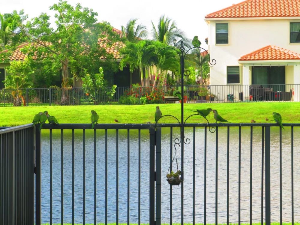 和尚鹦鹉鸟(monkparakeet)又到院拜访来了,真高兴。这次,队伍壮大了,共11只。鹦鹉不仅漂亮,而且鸟儿之间相互和谐。在至今来院造访的6种鸟中,只有鹦鹉,相互间不抢,不推,不争,几只鸟可以一起站在食盘里或边,共同进食。